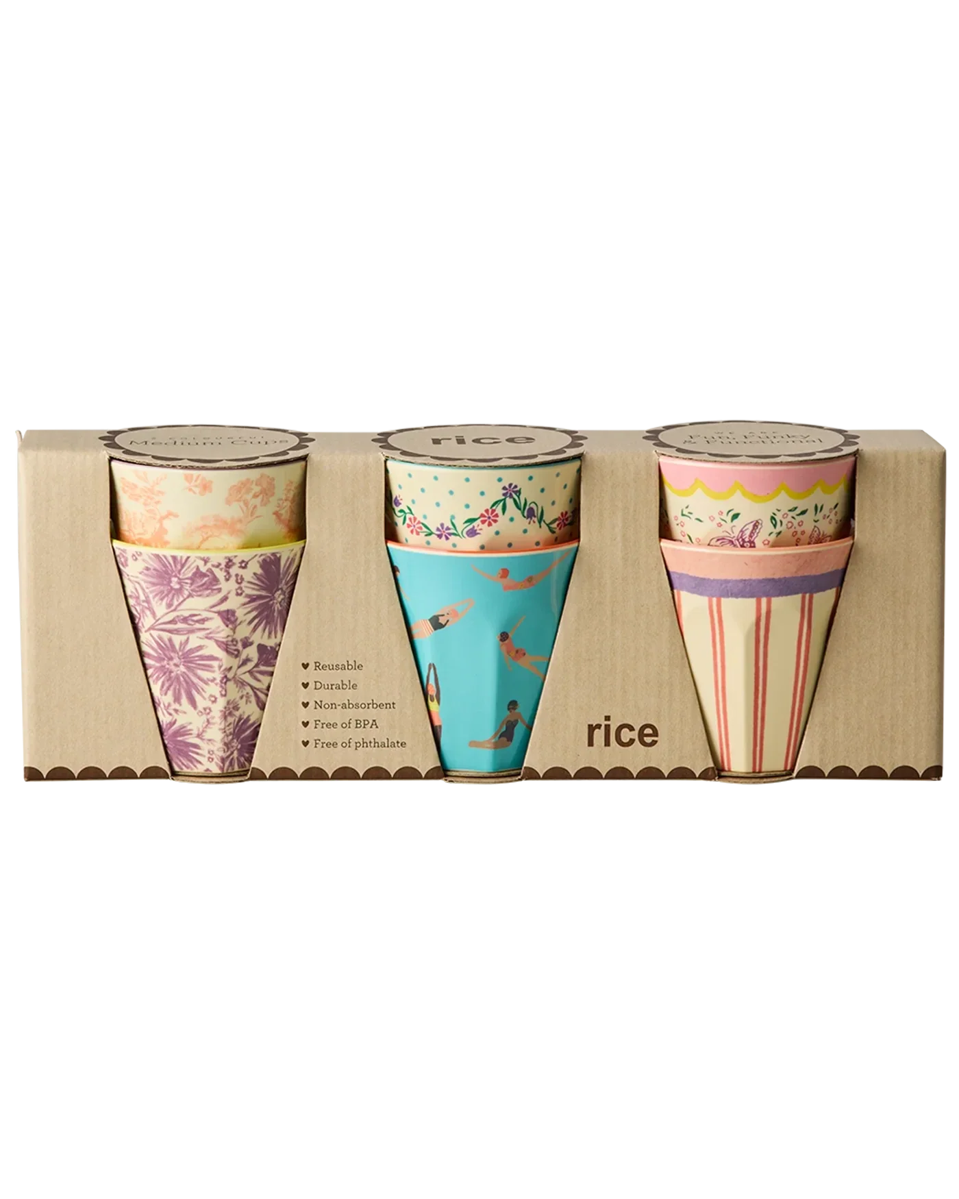 Een set met 6 van onze populaire middelgrote melamine bekers met de prachtige prints van de "Glory Days" (Gloriedagen) collectie. Melamine is duurzaam en ideaal voor dagelijks gebruik, want het is sterk en makkelijk schoon te maken. De bekers hebben een inhoud van 250 ml en zijn super praktisch voor zowel kinderen als volwassenen! Let op: het product is niet geschikt voor de magnetron.