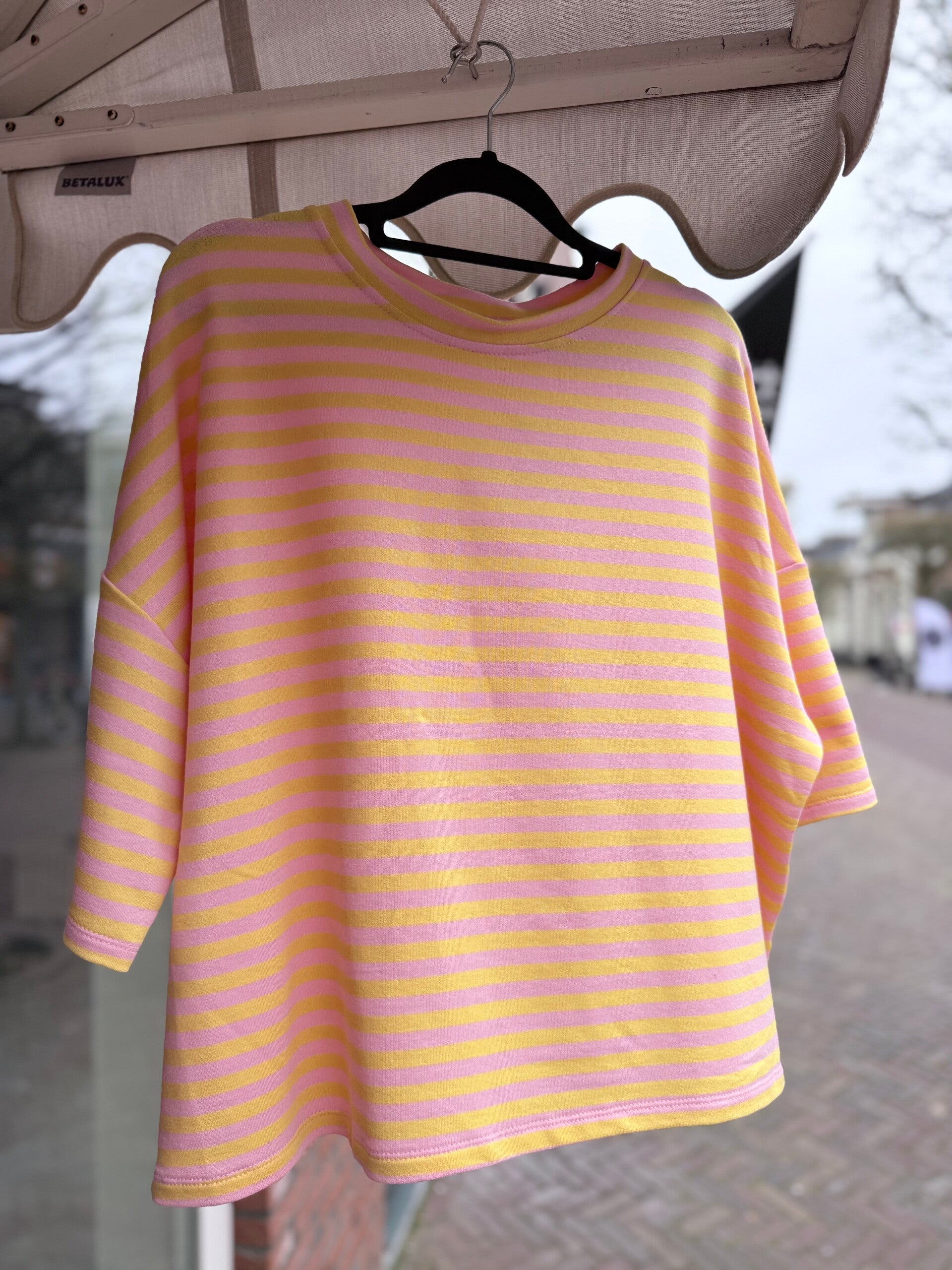 t-shirt streep geel/roze